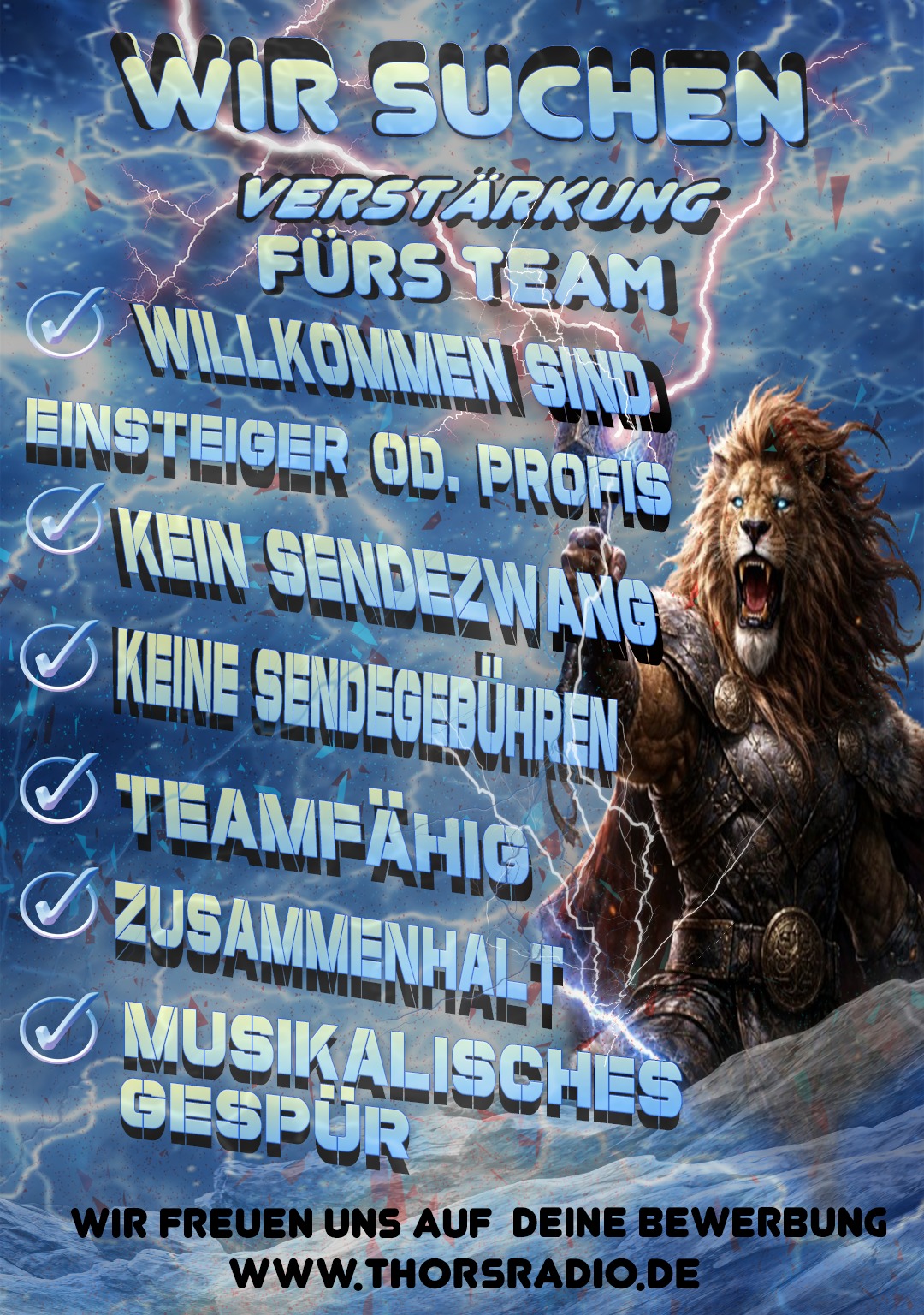Diese Webseite versteht sich als Zusatzangebot zu Thorsradio, sowohl für die Moderatoren, als auch für die Hörer und Fans!